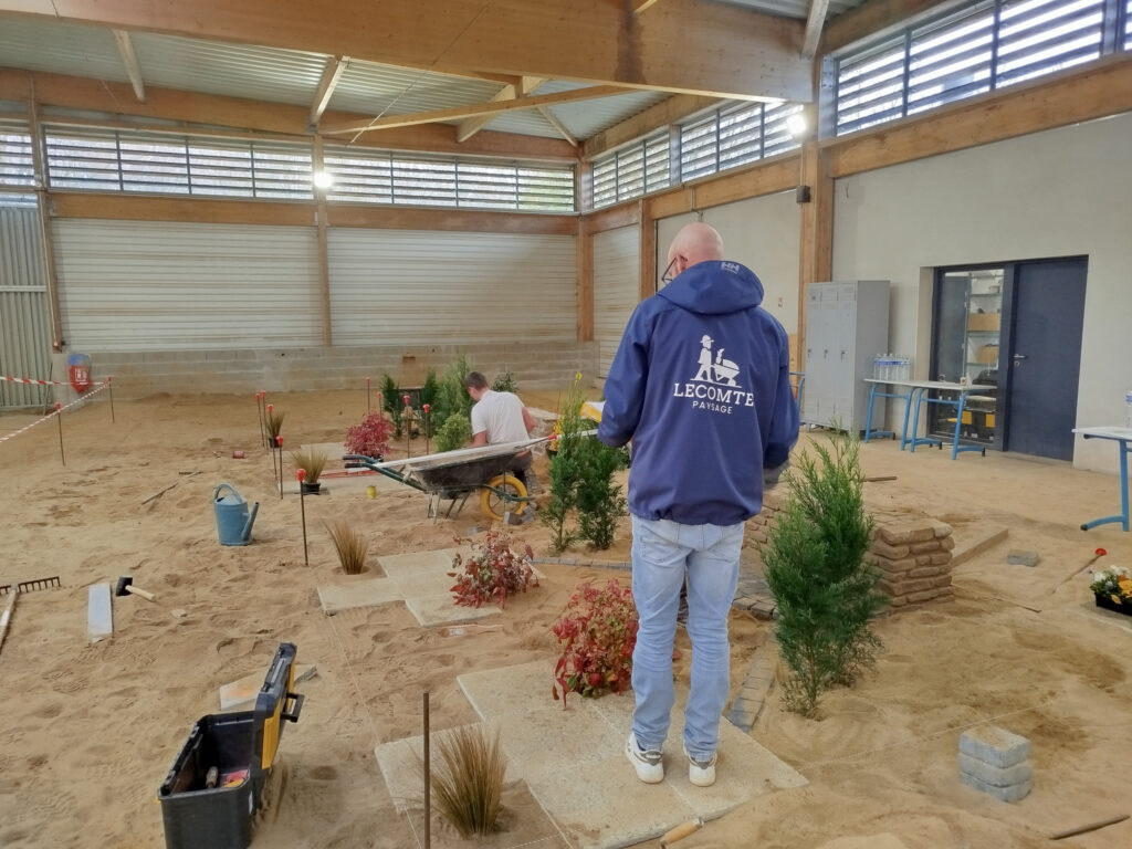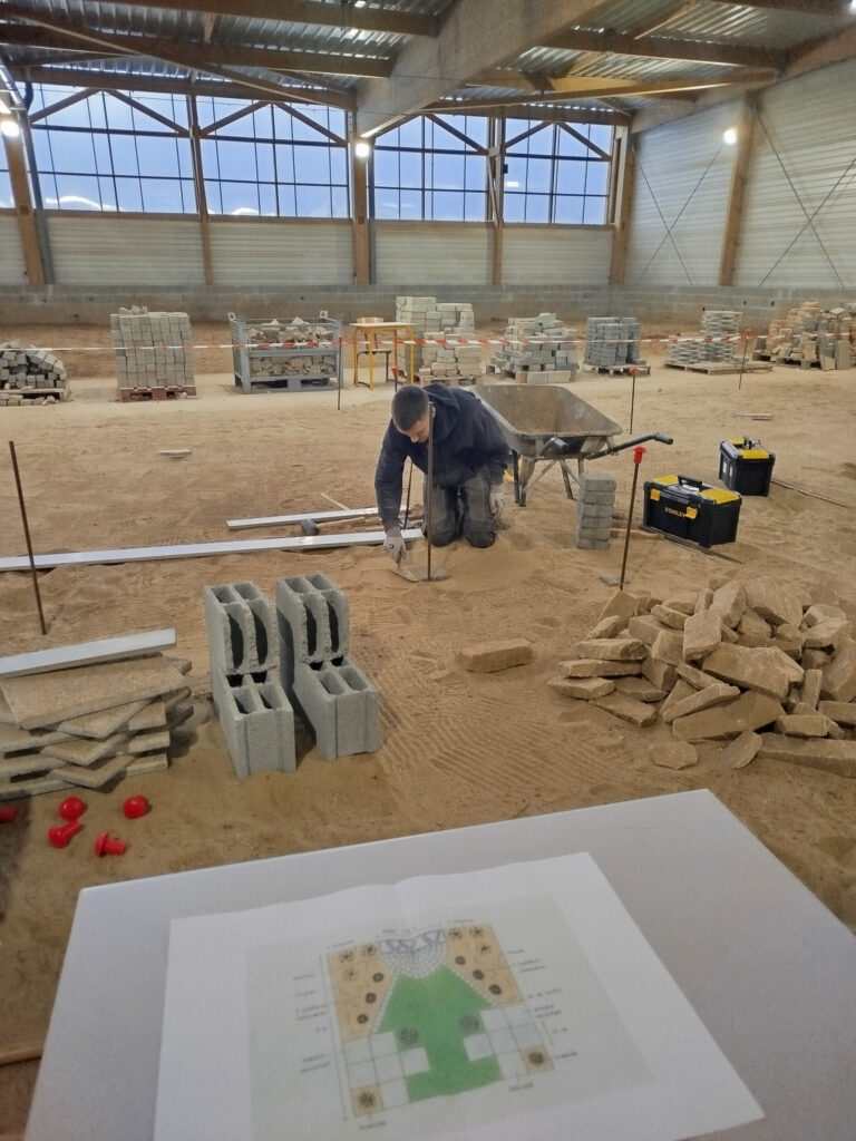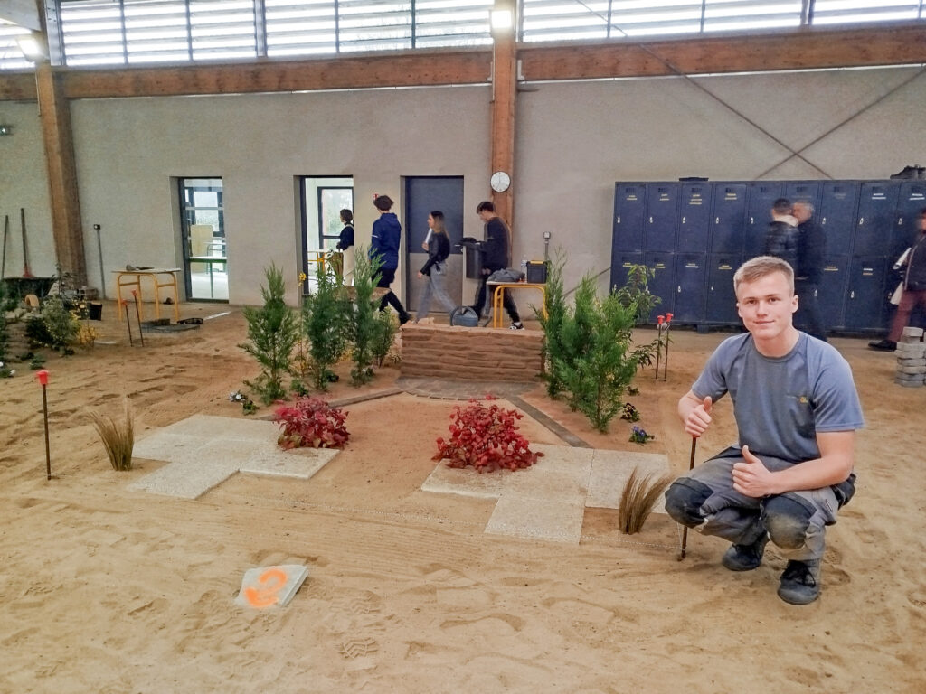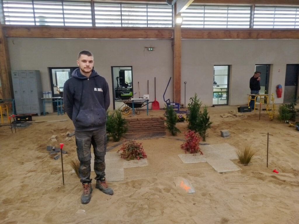 Les apprentis volontaires en Aménagements paysagers disposaient de 8h pour travailler sur une construction paysagère, à partir d’un plan édité à l’avance par les MOF – Meilleurs Ouvriers de France. Cela permet aux candidats de se préparer en amont s’ils le souhaitent. En plus de la construction paysagère, ils avaient une épreuve de reconnaissance des végétaux et un questionnement technique.