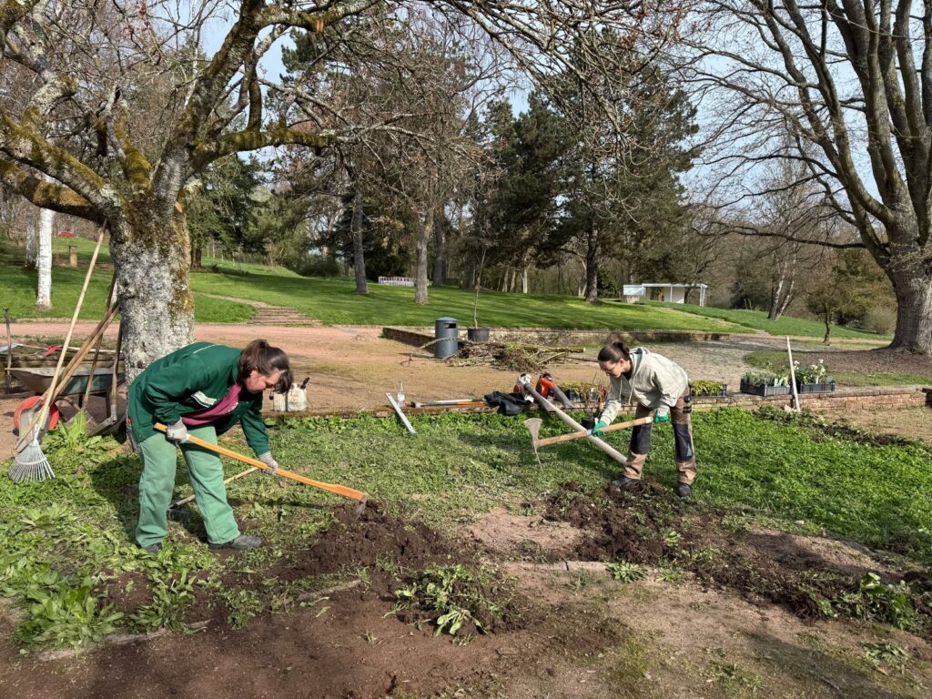 Dès le premier matin, pas question de faire du tourisme passif. Les apprenants ont retroussé les manches pour participer à la réfection du jardin franco-allemand de la ville de Sarrebruck. Un chantier symbolique autant que technique : travailler la terre dans un espace qui incarne depuis des décennies la coopération entre la France et l’Allemagne, ça pose le décor.